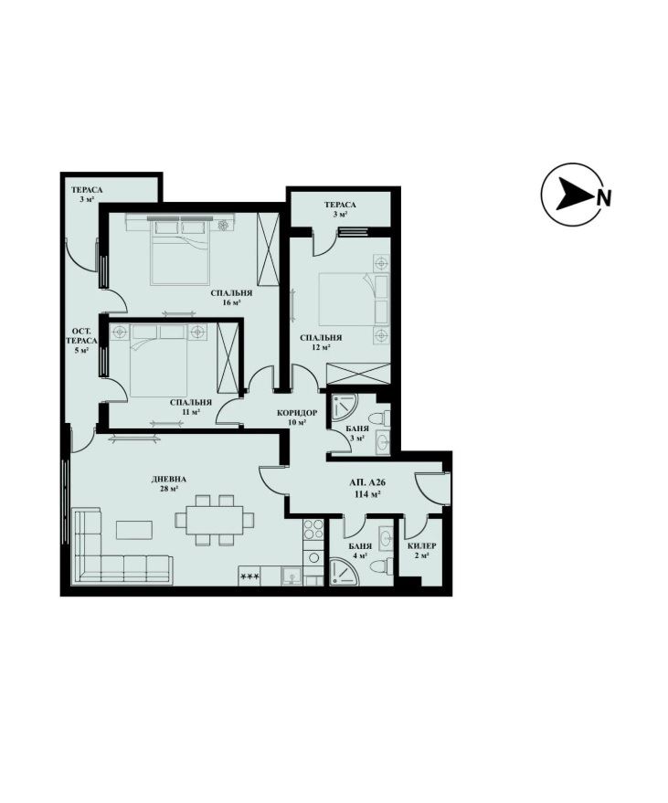 Всички апартаменти в сградата са построени според най-съвременните и добри интериорни и функционални решения в света на строителството.